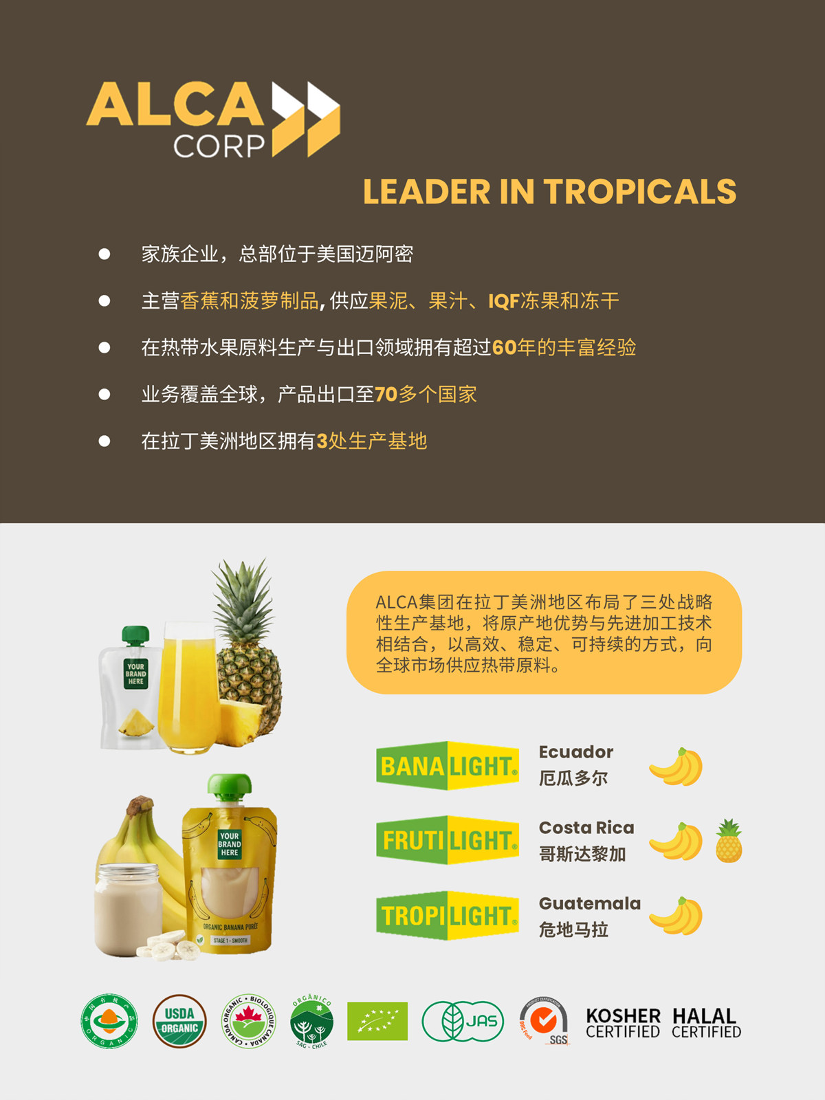 主营产品:有机/常规香蕉泥、NFC菠萝汁